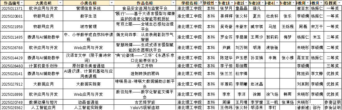 自竞赛通知发布以来,学院高度重视,组织指导教师团队开展专题培训,从技术难点突破到作品优化迭代,全程为参赛学生提供指导。参赛学生聚焦目标、刻苦钻研,在省赛舞台上充分展现了淮理学子的创新精神与专业素养。