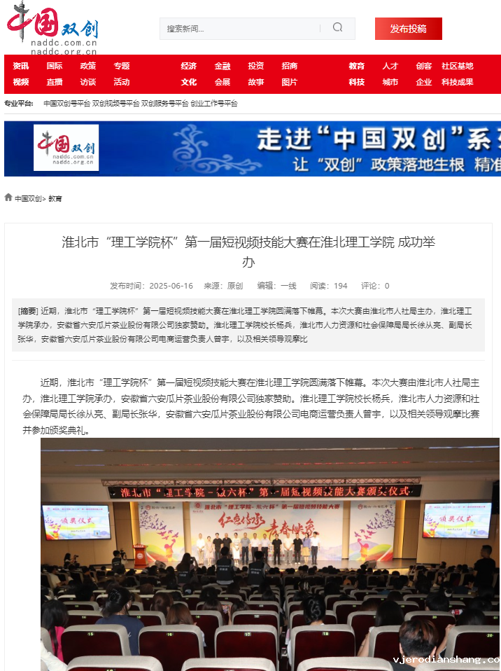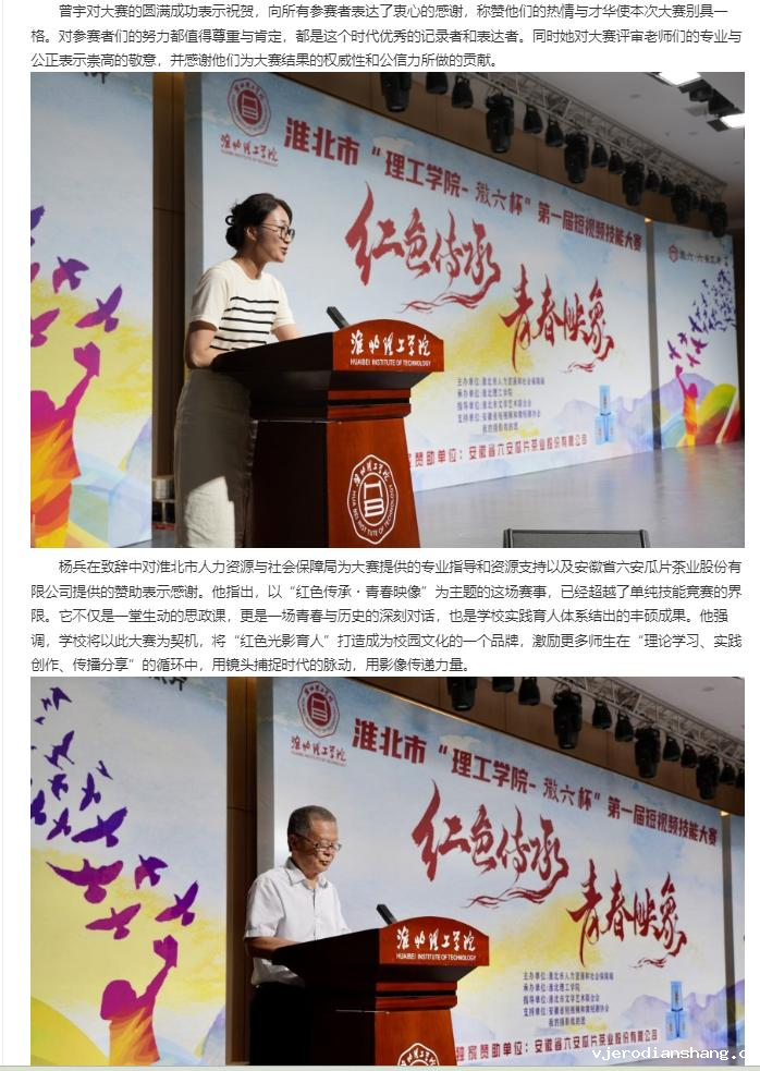 近期,淮北市“理工学院杯”第一届短视频技能大赛在米兰·体育官方网站圆满落下帷幕。本次大赛由淮北市人社局主办,米兰·体育官方网站承办,安徽省六安瓜片茶业股份有限公司独家赞助。米兰·体育官方网站校长杨兵,淮北市人力资源和社会保障局局长徐从亮、副局长张华,安徽省六安瓜片茶业股份有限公司电商运营负责人曾宇,以及相关领导观摩比赛并参加颁奖典礼。对此,中国双创网进行了报道: